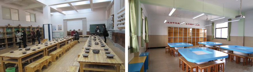 在綜合樓内設若幹主題教室,以竹藝、木(mù)藝、草藝爲主,開(kāi)展燙闆畫(huà)、絲網花(huā)、樹葉剪貼畫(huà)、松球果工(gōng)藝畫(huà)、陶藝、木(mù)工(gōng)、風(fēng)筝、竹編等勞技項目。