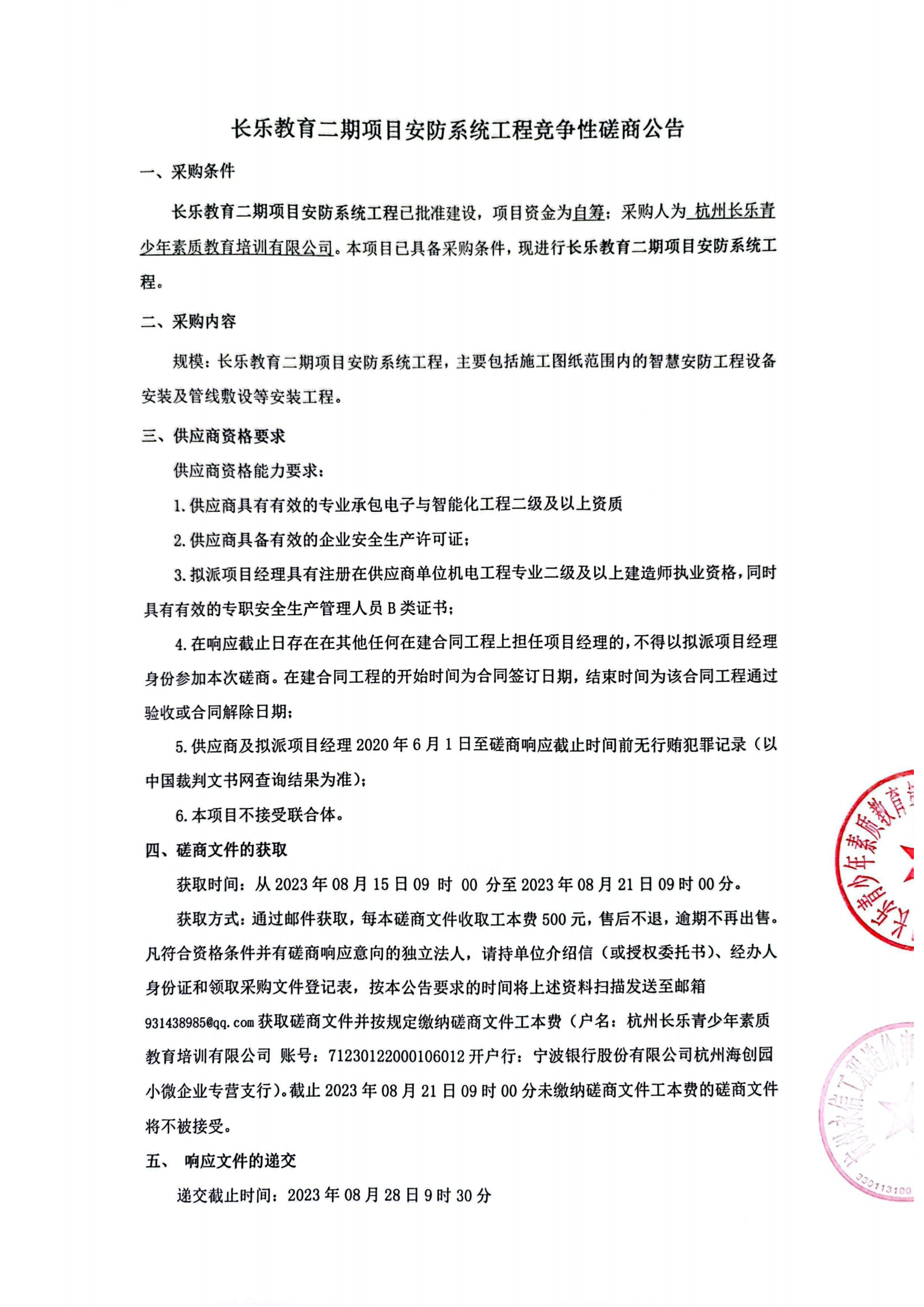 長樂教育二期項目安防系統工(gōng)程競争性磋商公告