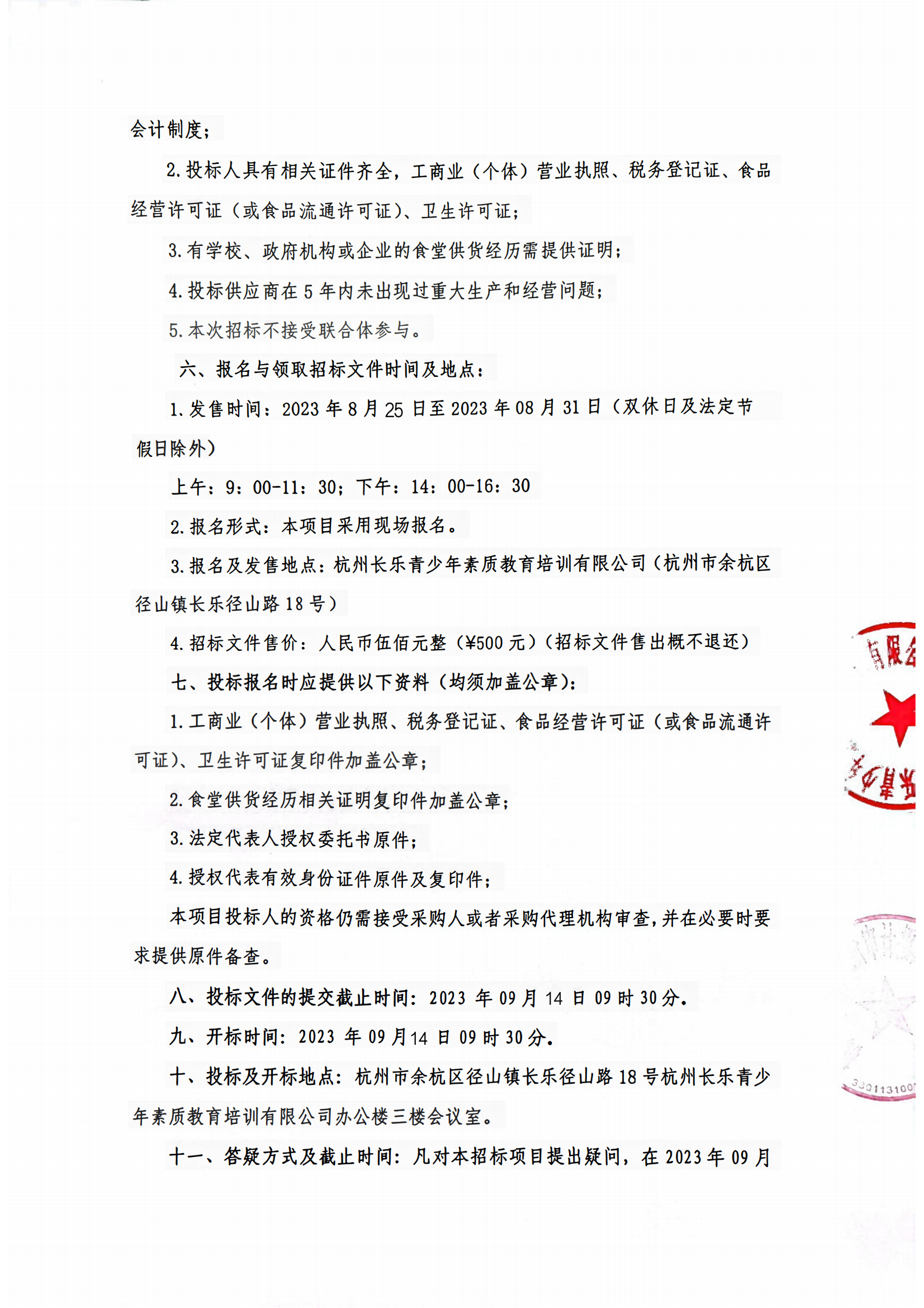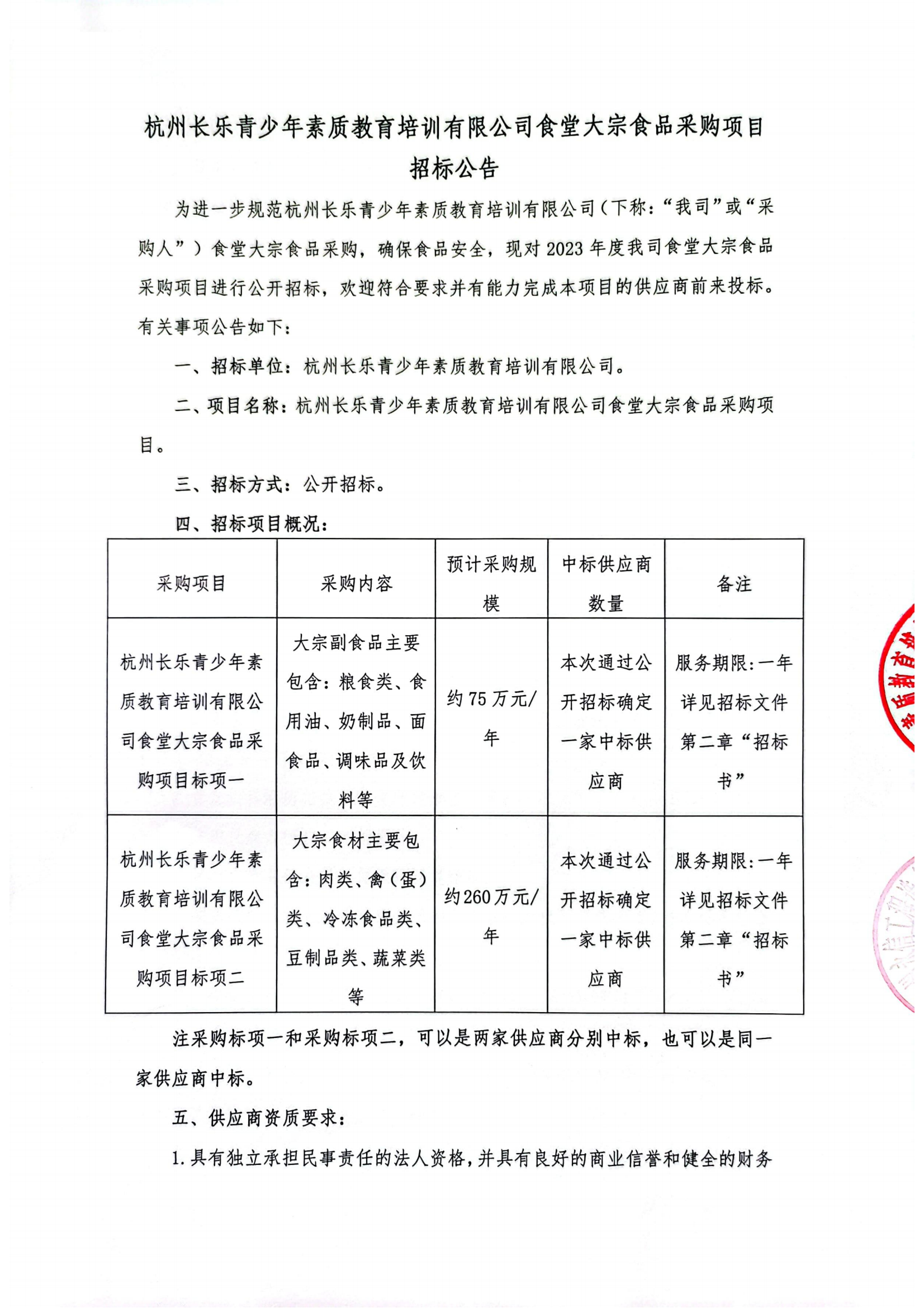 長樂教育食堂大(dà)宗食品采購項目招标公告