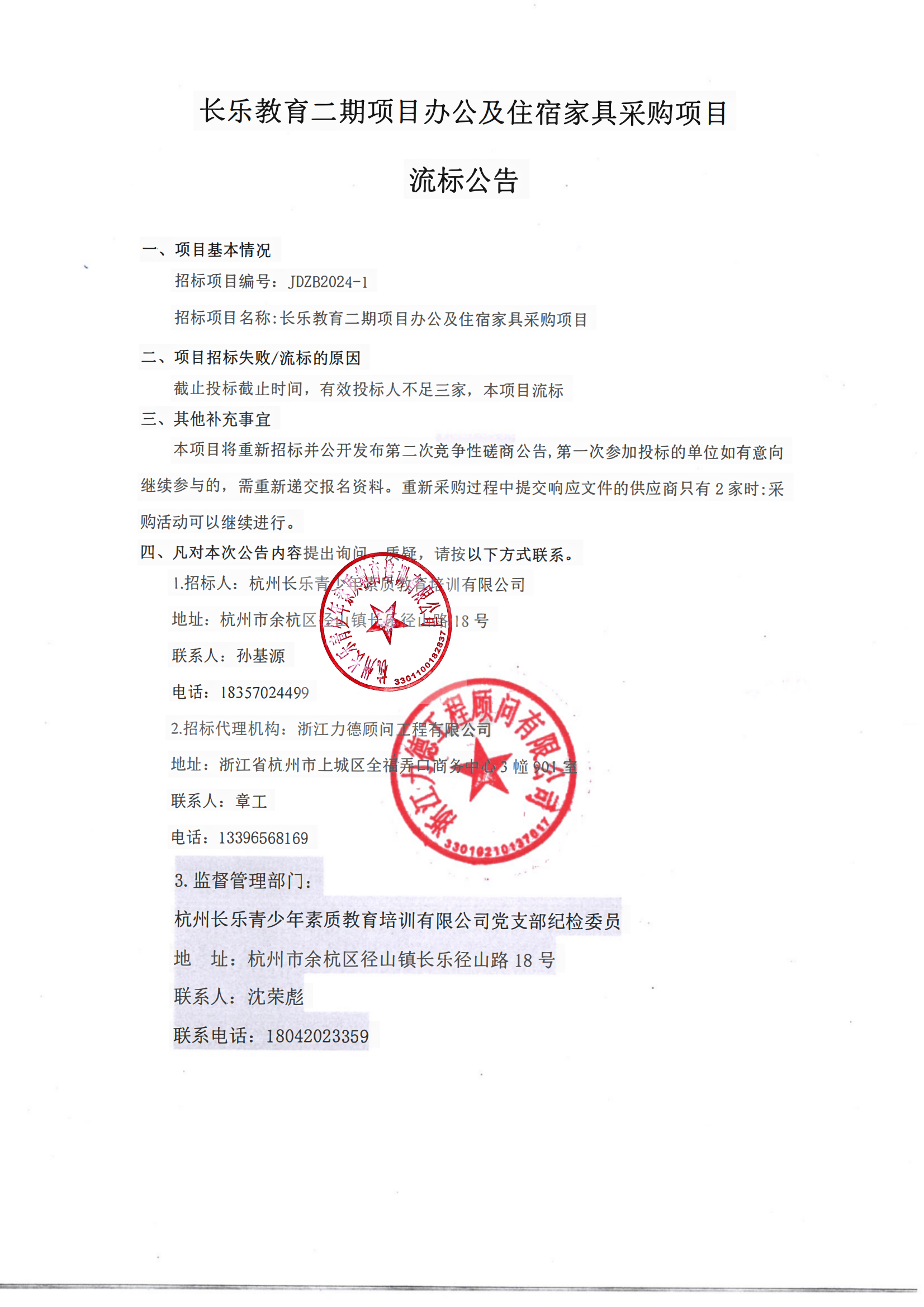 長樂教育二期項目辦公及住宿家具采購項目流标公告